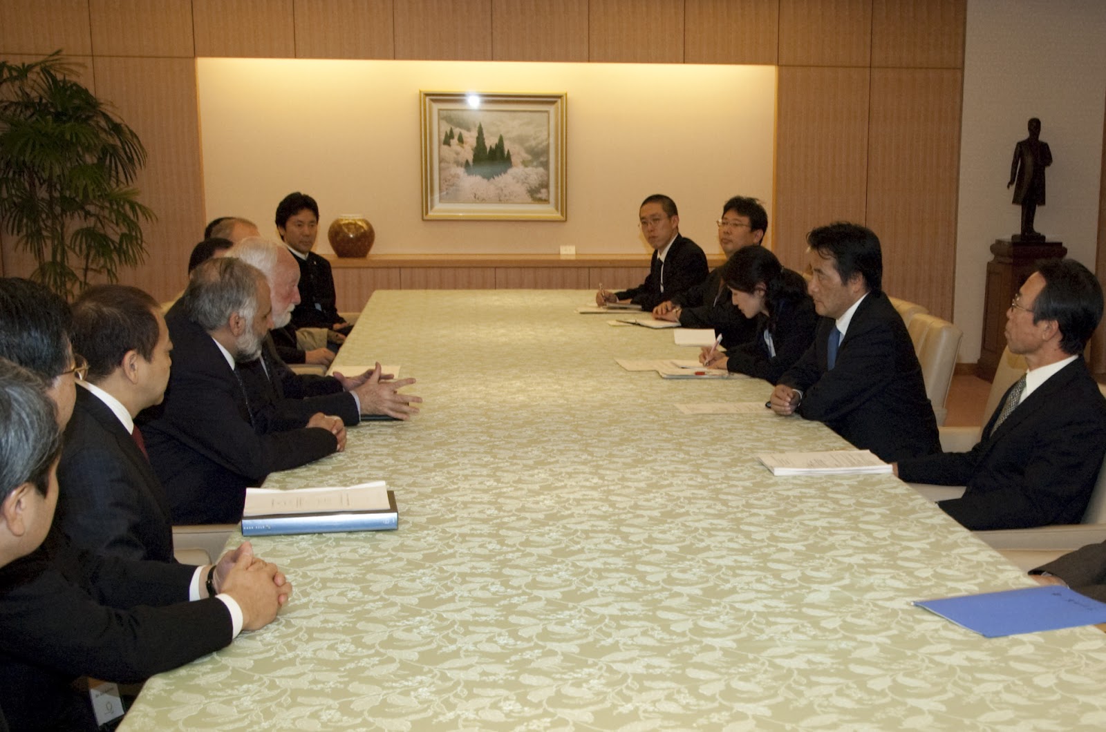 Before the press conference took place, the Master of Ceremonies and Acting President of JPSS, Senator Tadashi Inuzuka (DPJ), and his delegation split into two units, which visited the Prime Minister's Office and the Foreign Ministry to deliver the conclusions of the conference; an eight-point recommendation written under the supervision of Amb. Francesc Vendrell, the Chairman of the Conference. To the delegation, Prime Minister Hatoyama was noted to have said the following when he received the document from Rev. Nichiko Niwano, President of WCRP Japanese Committee: